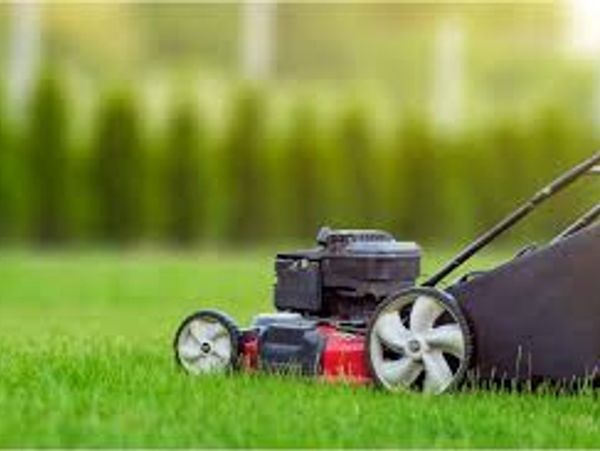a group of high school students come together to volunteer their time and energy by mowing lawns for senior citizens